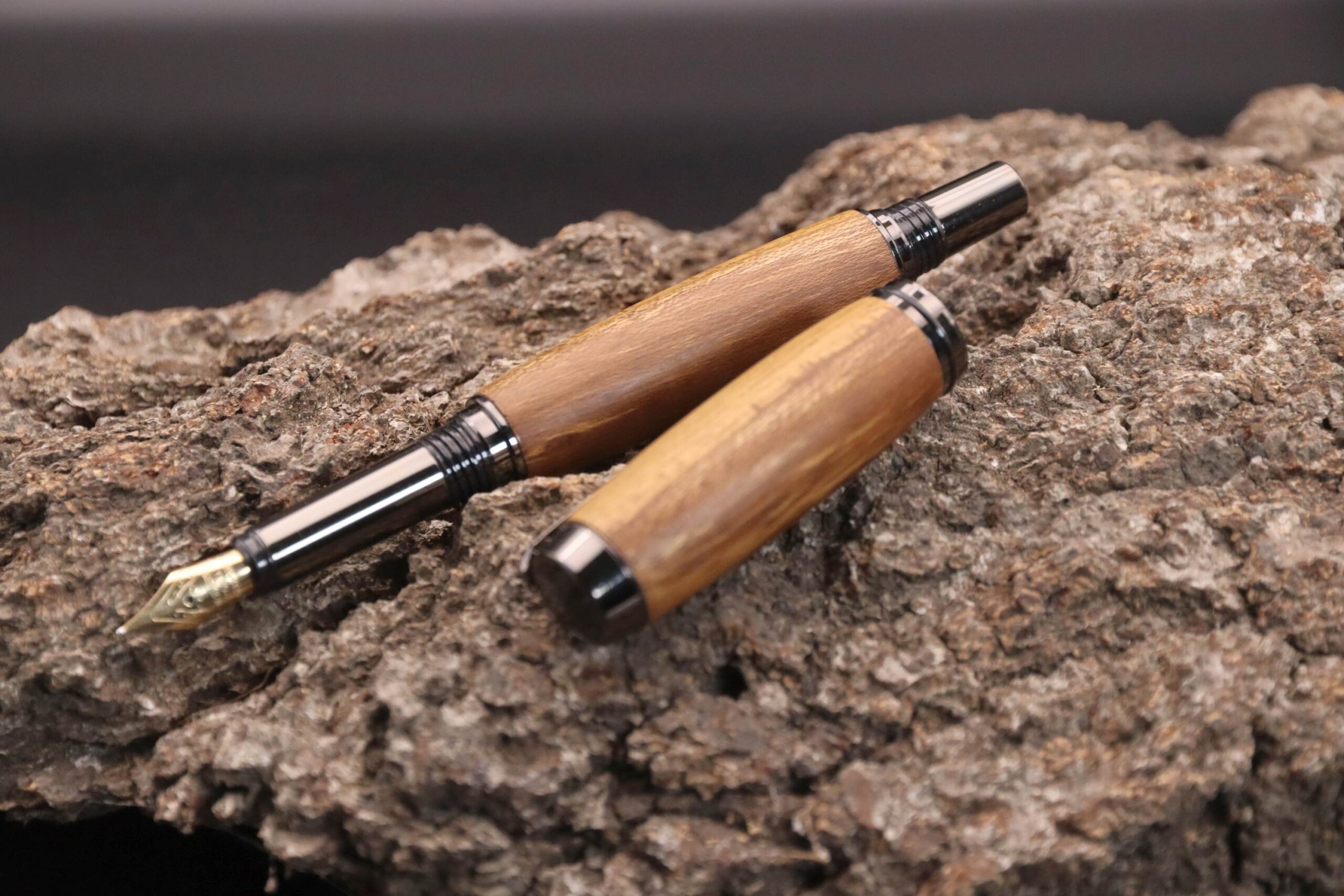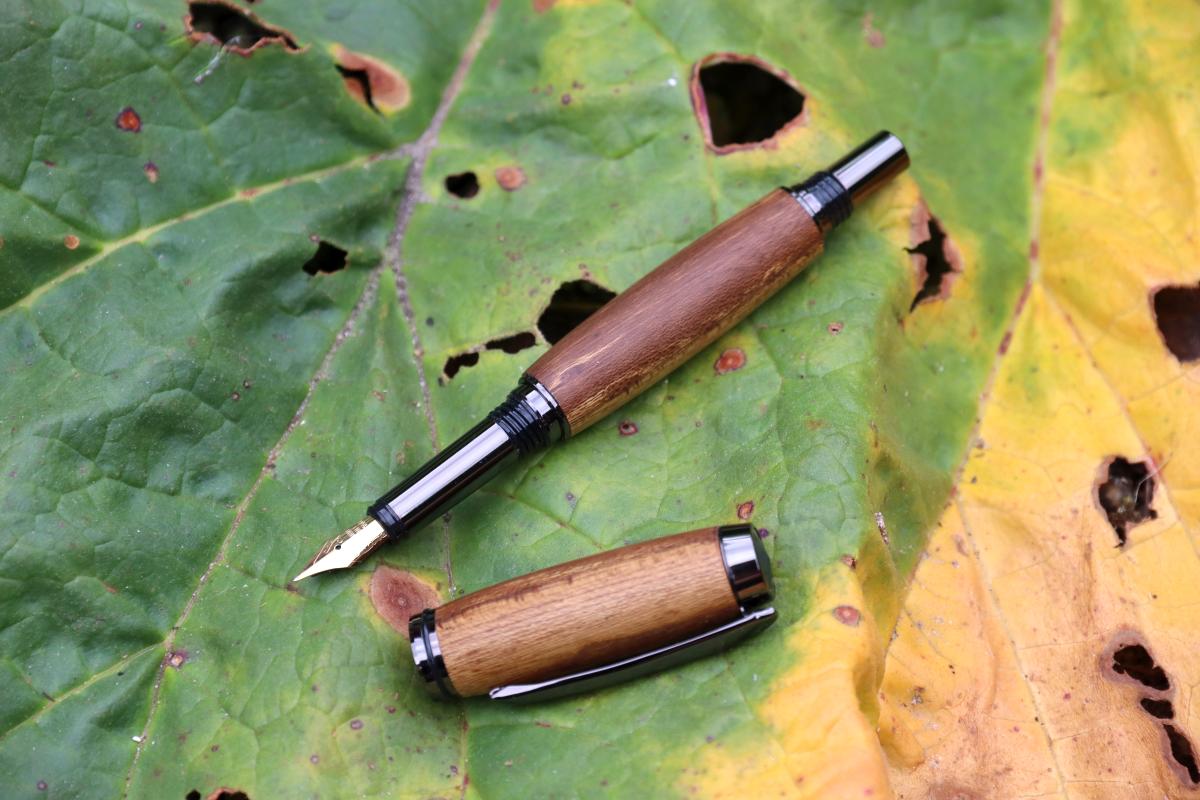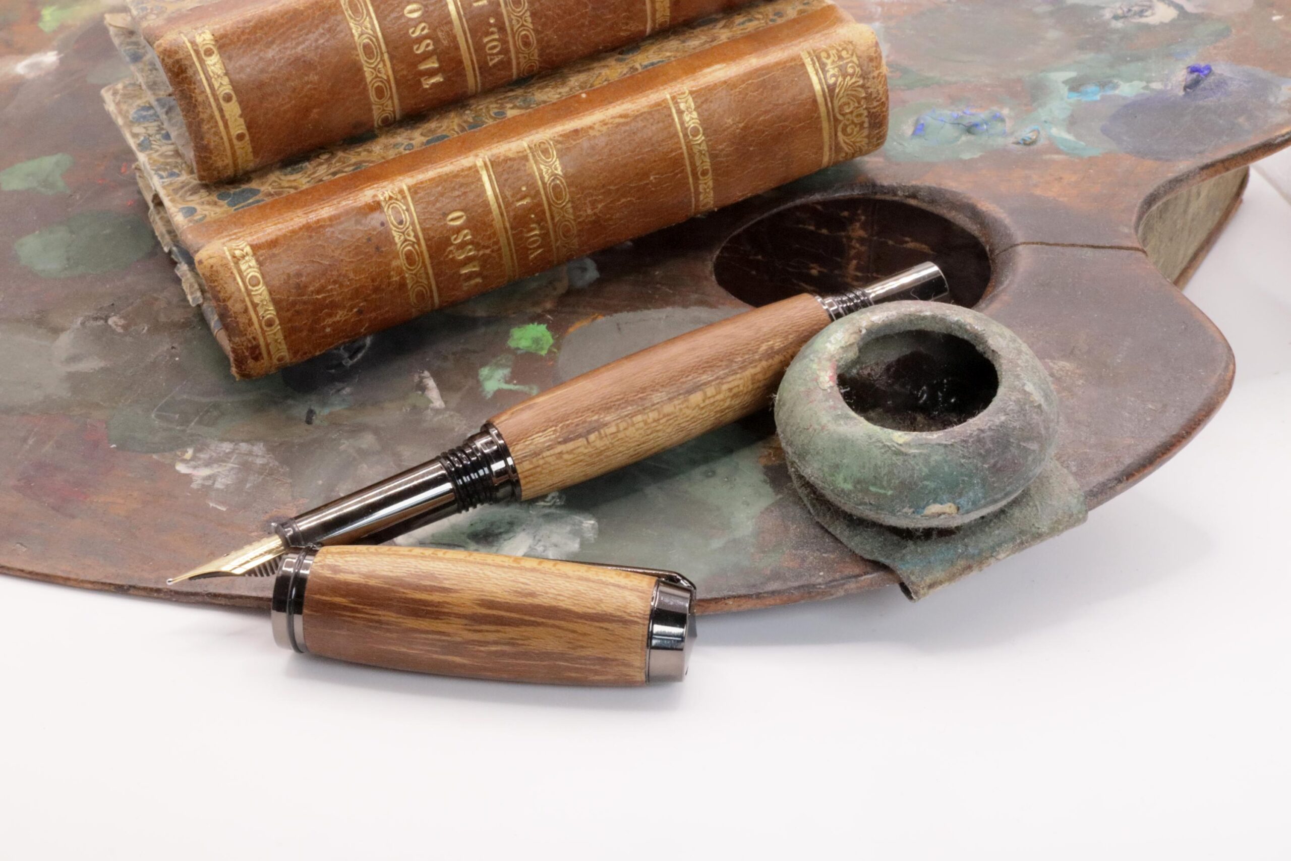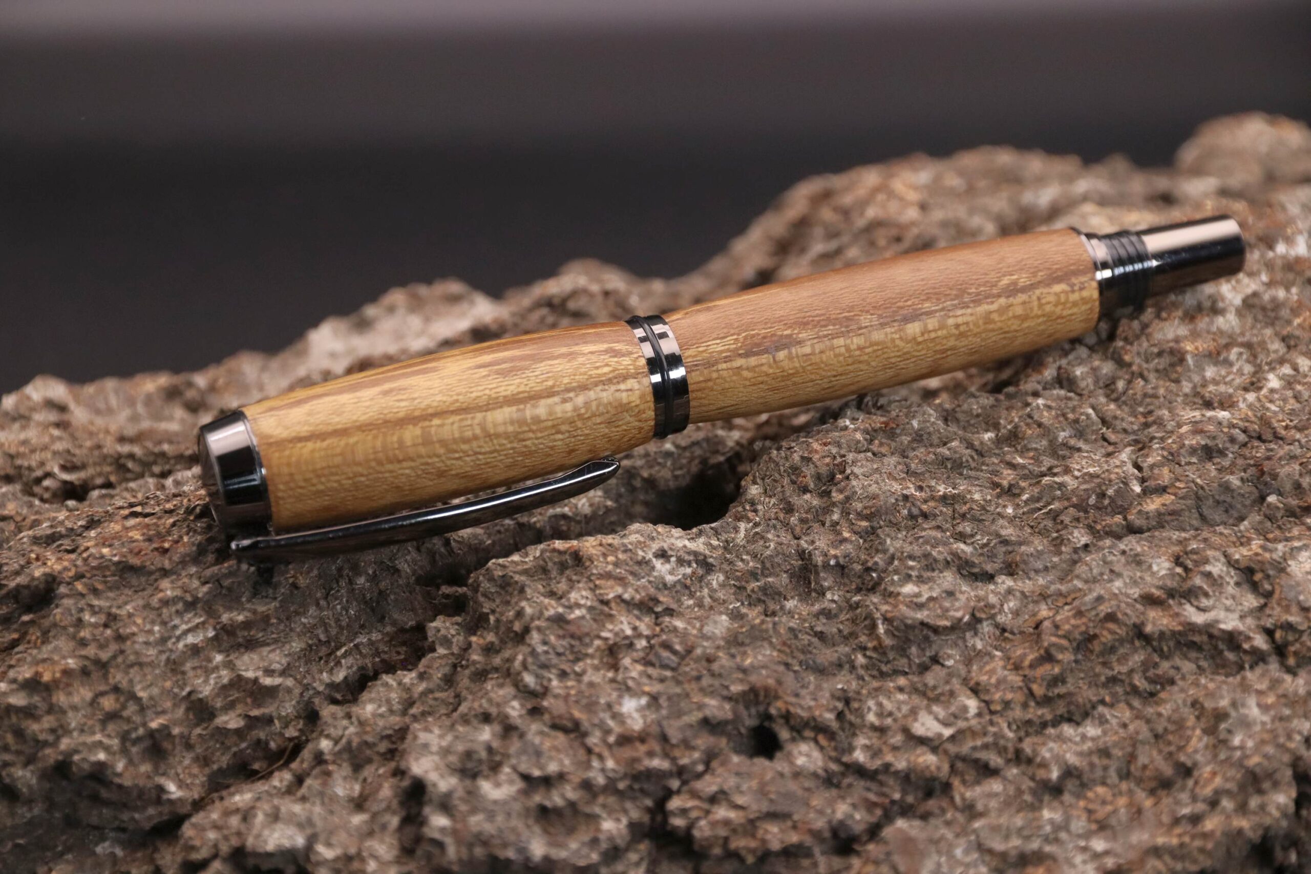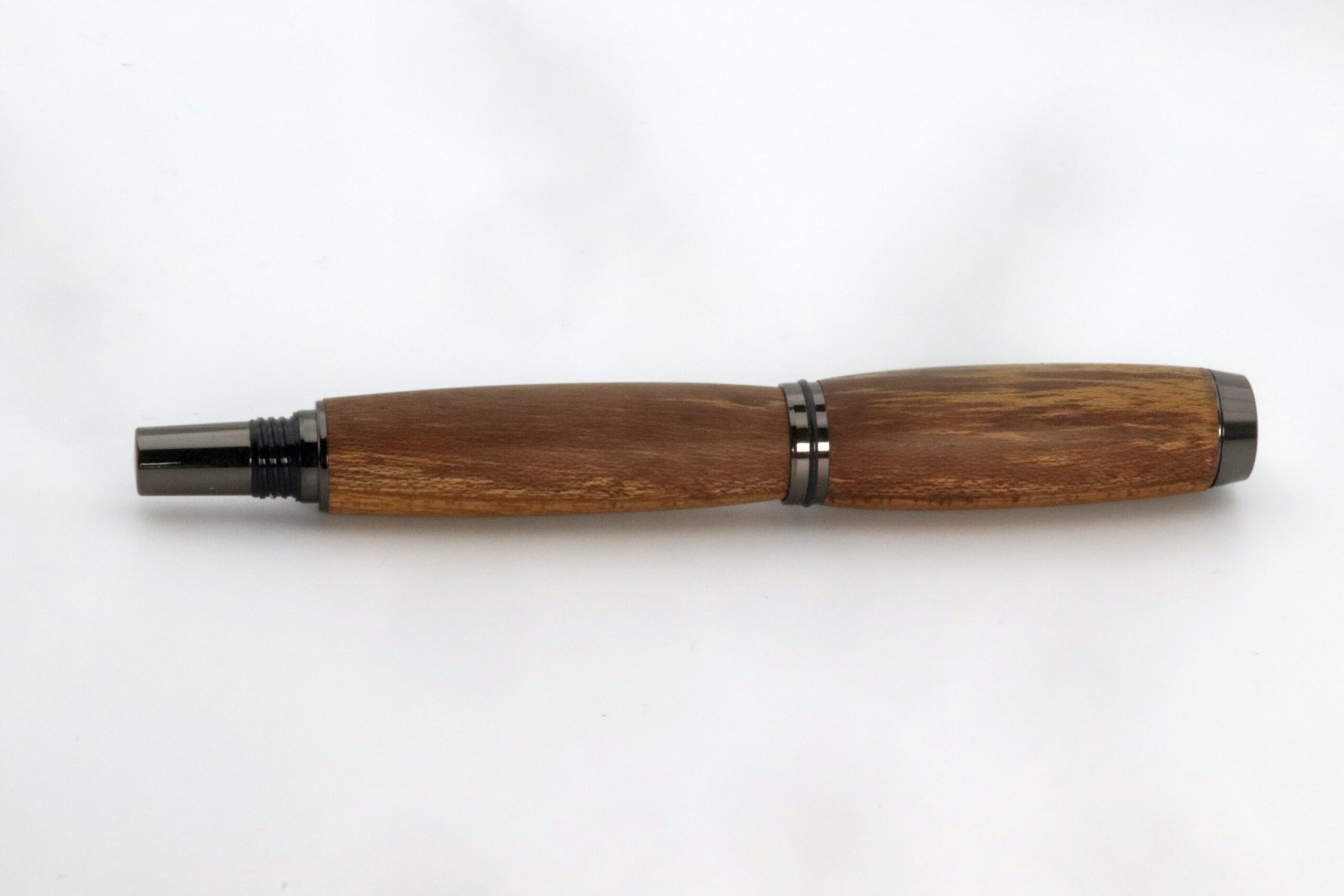 Fyldepen i Guldregn med Black Titanium dele. Dette stykke guldregn har et farveskifte lige ned midt igennem og står så smukt på den måde. Metaldelene er i Black Titanium og det er med ‘postable’ tut, hvilket vil sige, at man kan skrue den fast i toppen, hvis man har det behov.