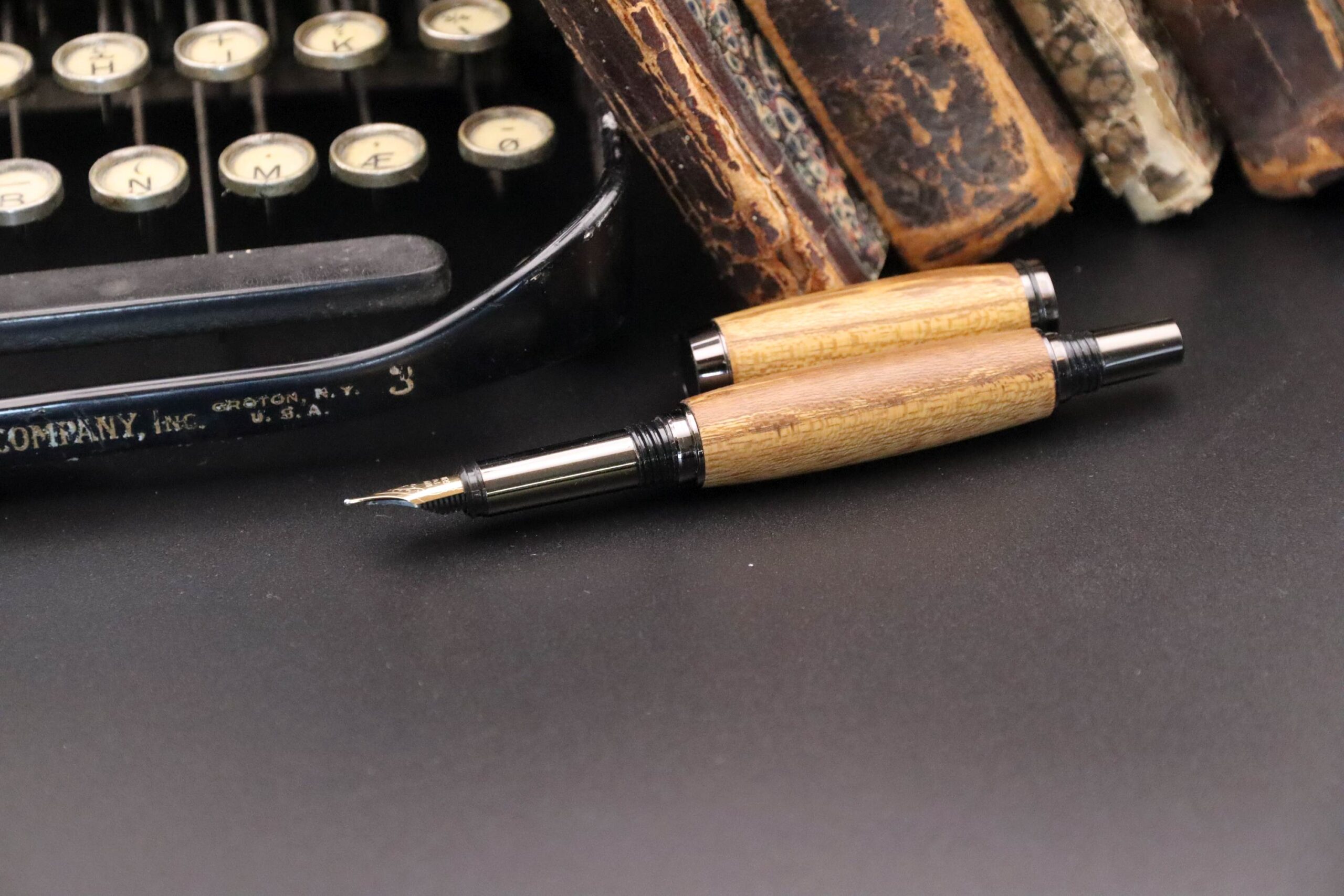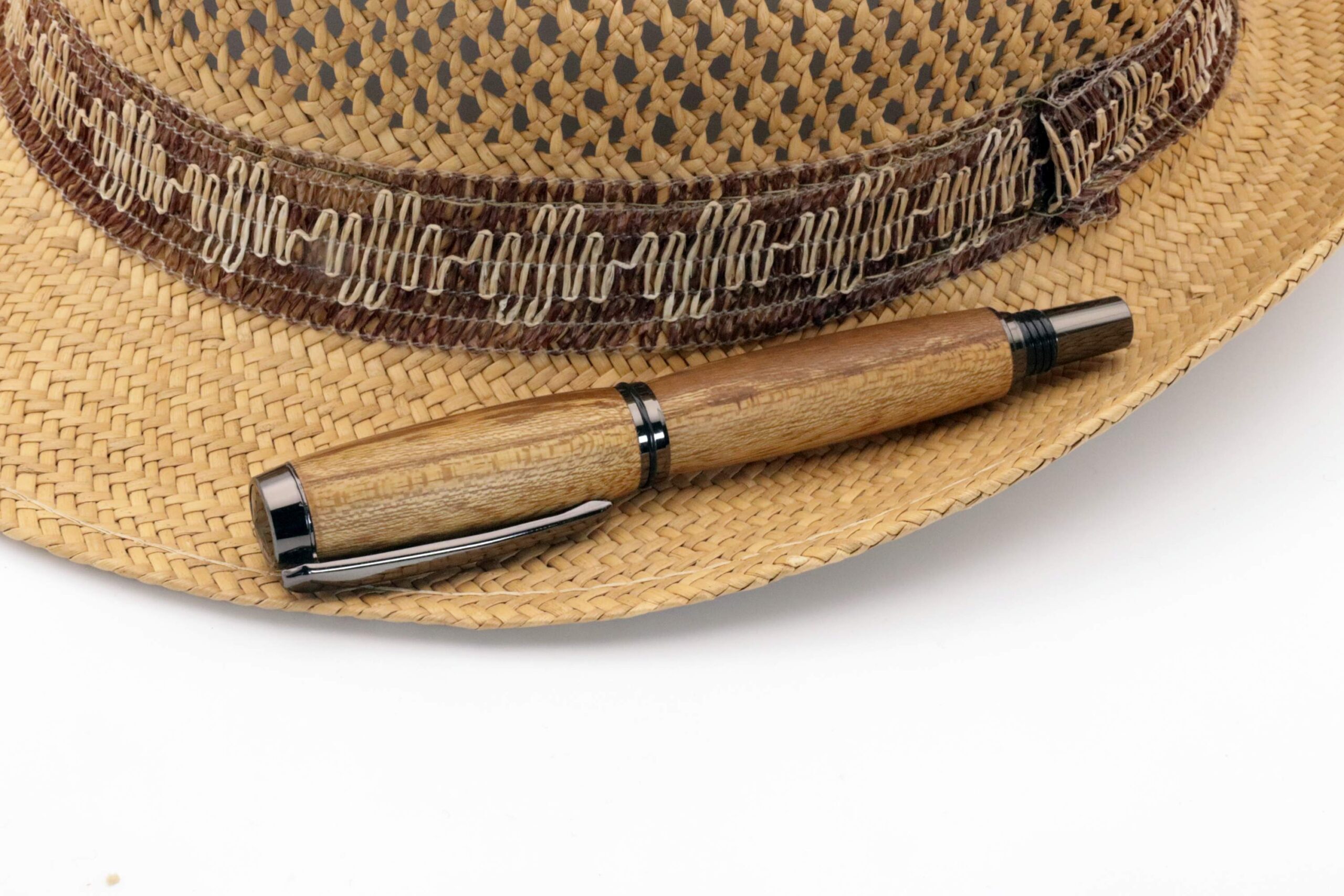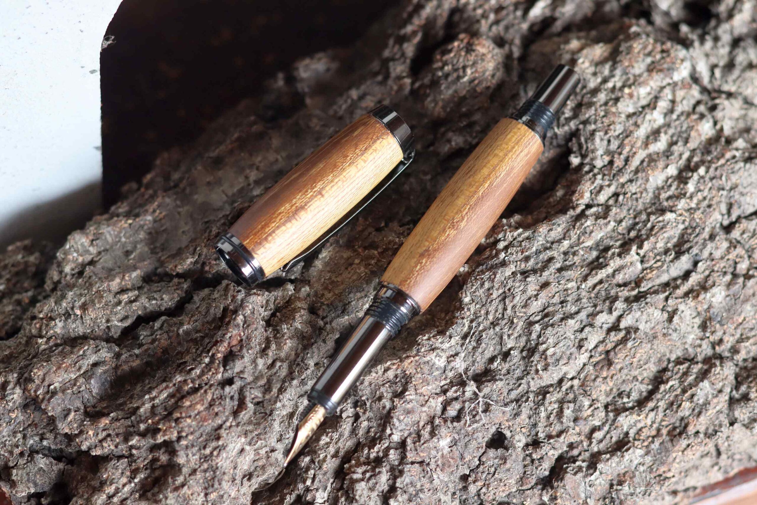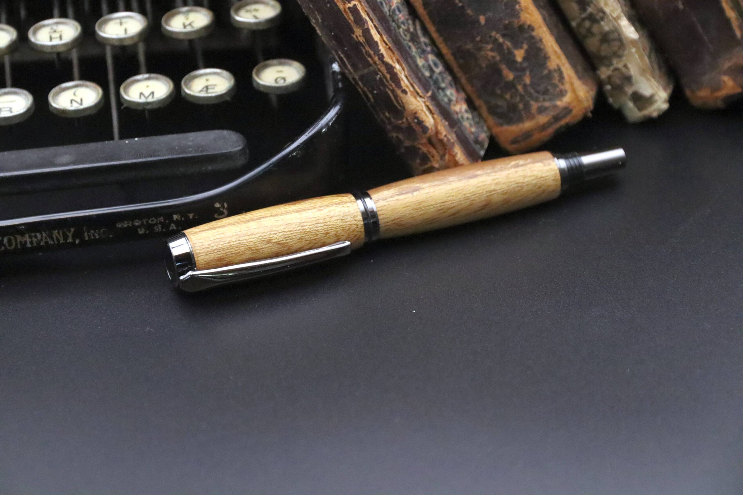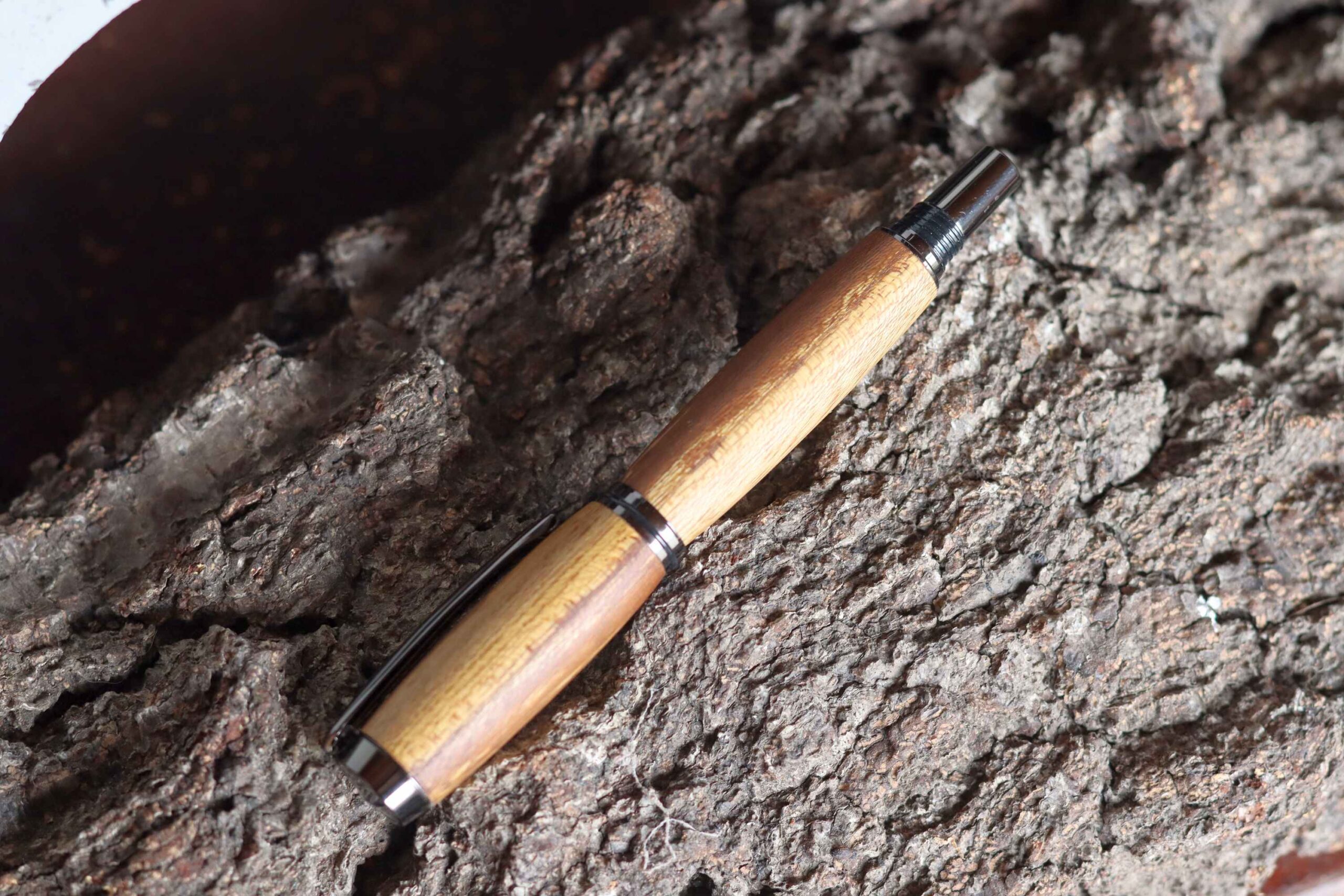 Fyldepen i Guldregn med Black Titanium dele. Dette stykke guldregn har et farveskifte lige ned midt igennem og står så smukt på den måde. Metaldelene er i Black Titanium og det er med ‘postable’ tut, hvilket vil sige, at man kan skrue den fast i toppen, hvis man har det behov.