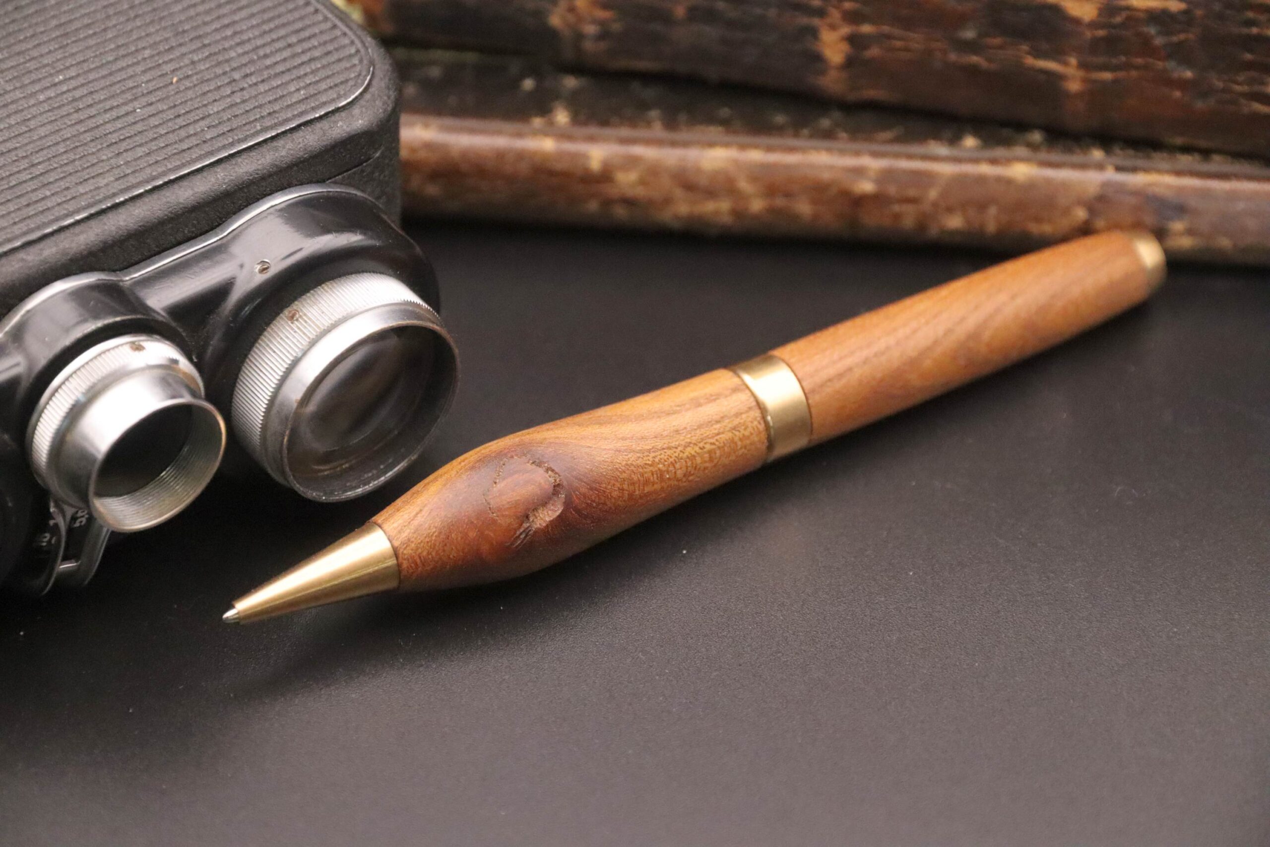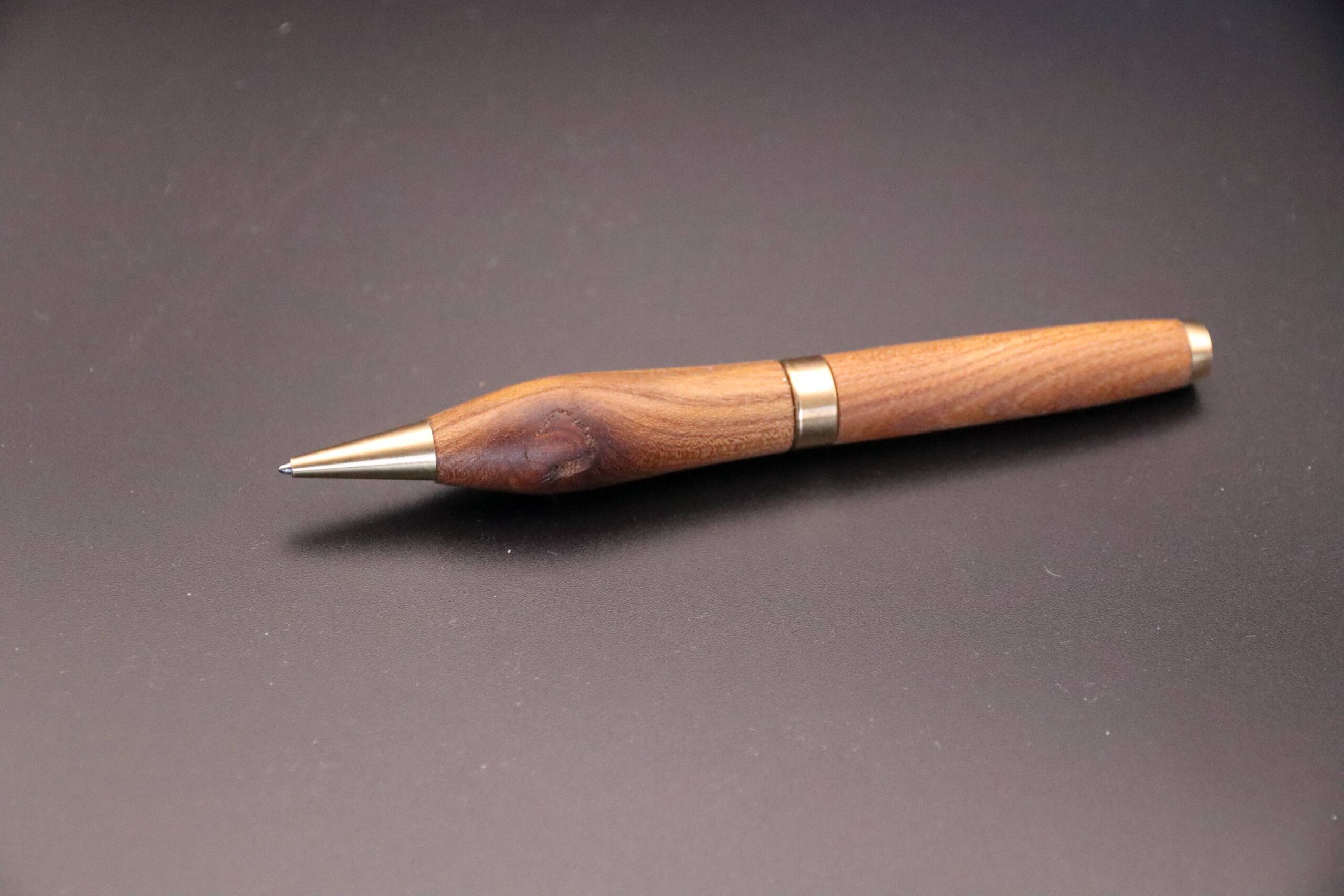 Det er knasten der gør det for mig. Jeg elsker når træet fortæller sin egen historie. Det er ikke en fejl at der er hul i og at der er en knast og at pennen ikke er ‘perfekt’. For den ér perfekt. Det er perfekt at den fortæller, at vi har at gøre med et levende materiale, som ikke er ensartet. Derfor er denne kuglepen lidt noget særligt for mig.
