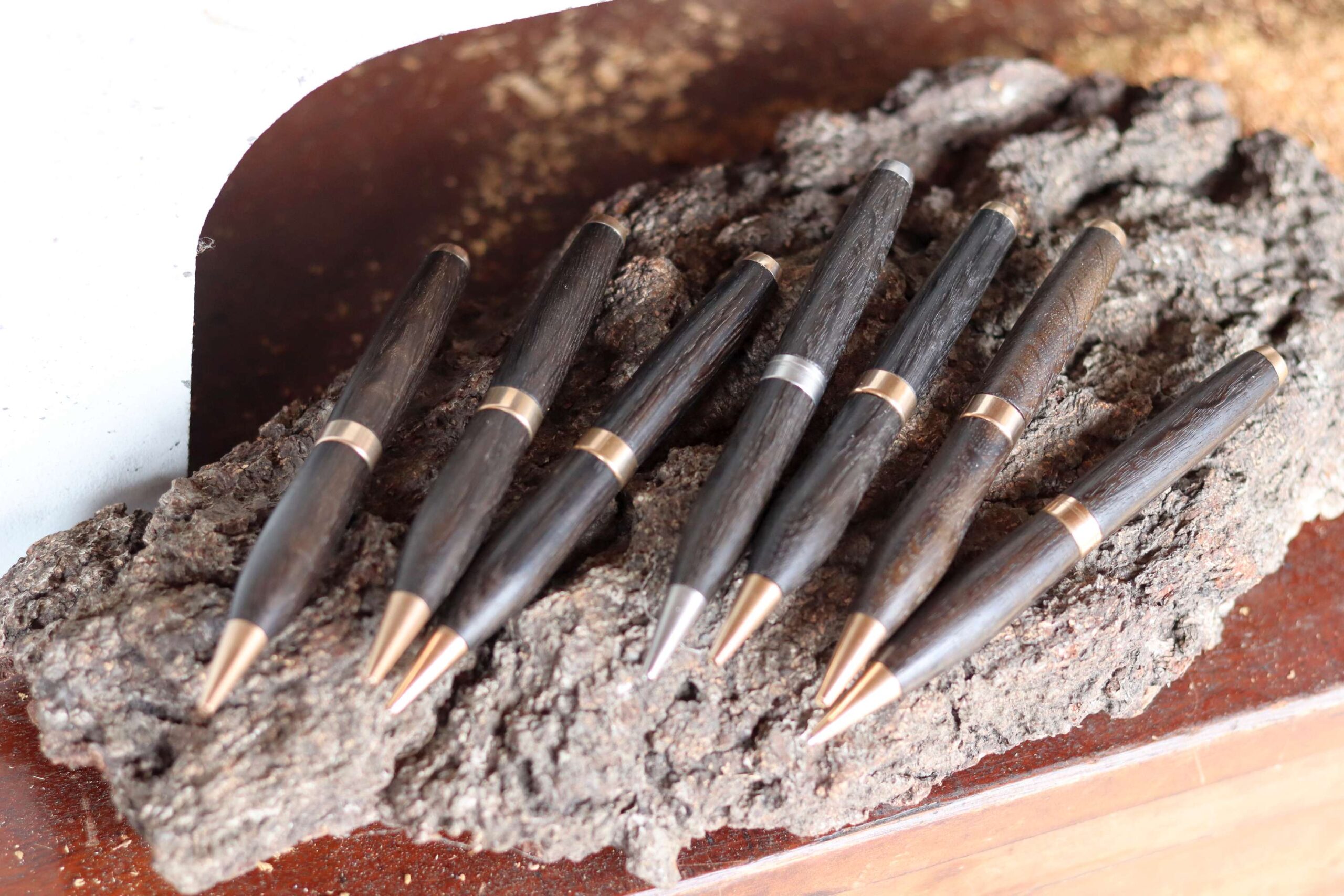Egetræet er smukt og lækkert i sådan en pen. Bronzedelene fik jeg lavet til et projekt for nogle år siden. De er i massiv bronze.